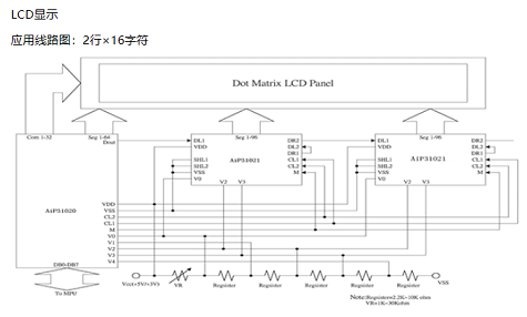 AiP31021可以從液晶驅動電路接收連續的數據,例如AiP31020,并將其轉換成相應的數據,輸出LCD驅動波形到LCD屏上,AiP31021是一個常規LCD驅動電路,可以驅動靜態和動態的LCD,該電路能當作一個segment驅動器來使用。