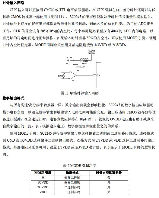 SC2245 是一款 14 位 10Msps 低功耗 3V 模擬電源供電, 3V 數(shù)字電源供電的模數(shù)轉(zhuǎn)換器,專為數(shù)字化高頻寬動(dòng)態(tài)范圍信號(hào)而設(shè)計(jì)。 SC2245 非常適合要求苛刻的成像和通信應(yīng)用, 其交流性能,包括 77dB 信噪比和 82dB 無(wú)雜散動(dòng)態(tài)范圍,用于遠(yuǎn)遠(yuǎn)超過(guò)奈奎斯特頻率的信號(hào)。直流規(guī)格包括±1LSB INL(典型值), ±0.25LSB DNL(典型值) 和無(wú)漏失碼。 轉(zhuǎn)換噪聲很低,僅為0.98LSBRMS。一個(gè)單獨(dú)的輸出電源使輸出能驅(qū)動(dòng) 0.5V 至 3.6V 邏輯電路.一個(gè)單端 CLK 輸入負(fù)責(zé)控制轉(zhuǎn)換器運(yùn)作。一個(gè)任選的時(shí)鐘占空比穩(wěn)定器在全速和多種時(shí)鐘占空比條件下實(shí)現(xiàn)了高性能。