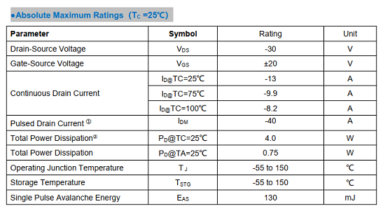 The ZM078P03S combines advanced trenchMOSFET technology with a low resistance package toprovide extremely low RDS(ON).