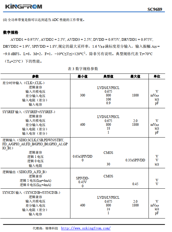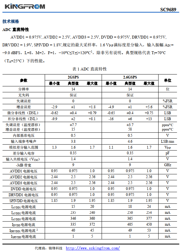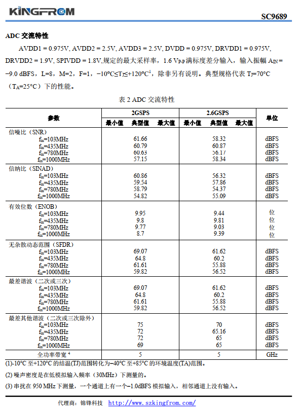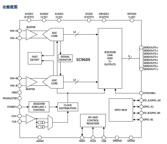 SC9689 國產(chǎn)替代美國 ADI AD9689 雙通道 14 位 2.0 GSPS/2.6 GSPS JESD204B ADC主要性能