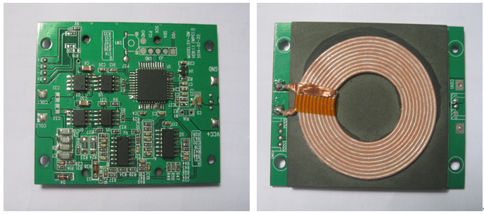 2.把QI無線接收產(chǎn)品靠近發(fā)射模塊線圈中心位置,此時模塊上的紅色LED將會亮起,QI無線接收