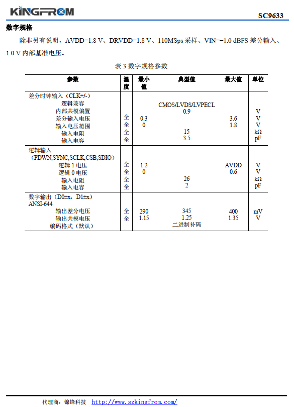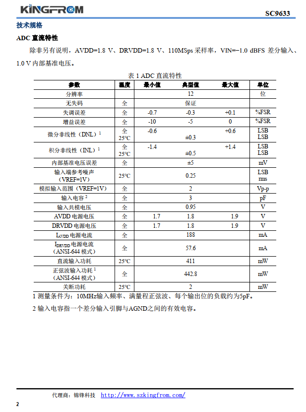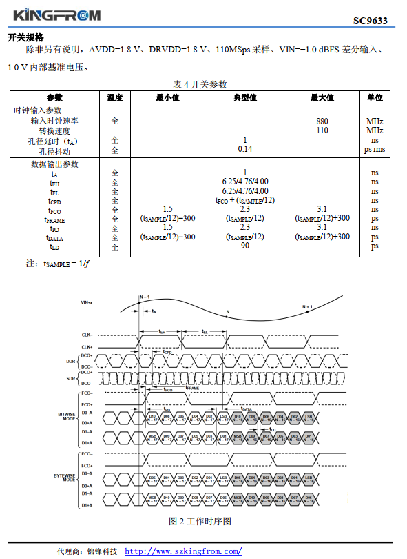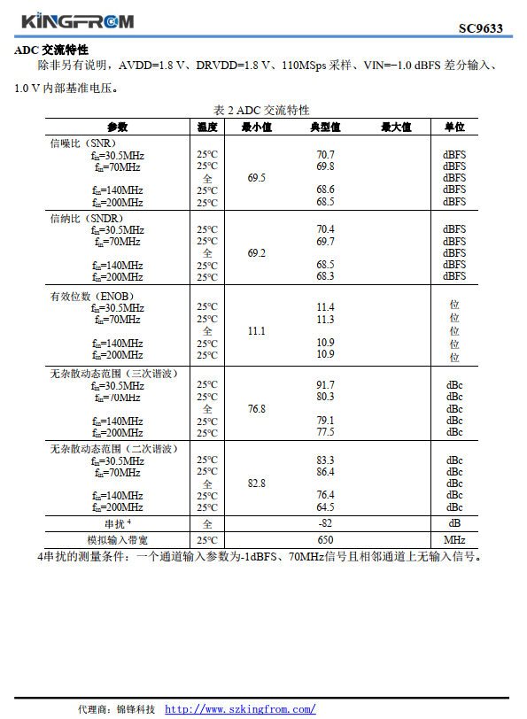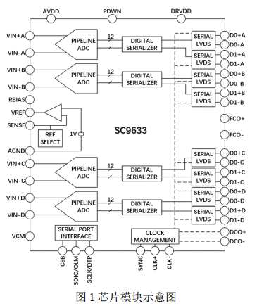 SC9633 國產(chǎn)替代美國 ADI AD9633 四通道 12 位 80/100/110MSps ADC主要性能
