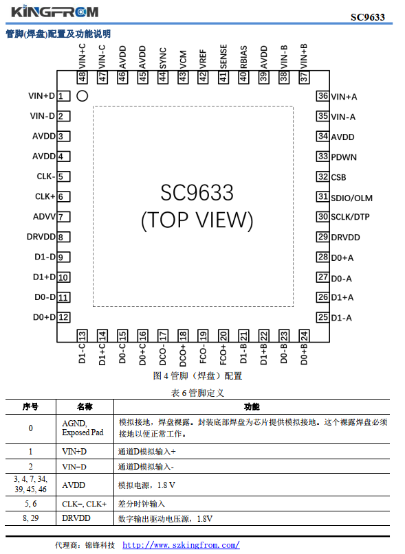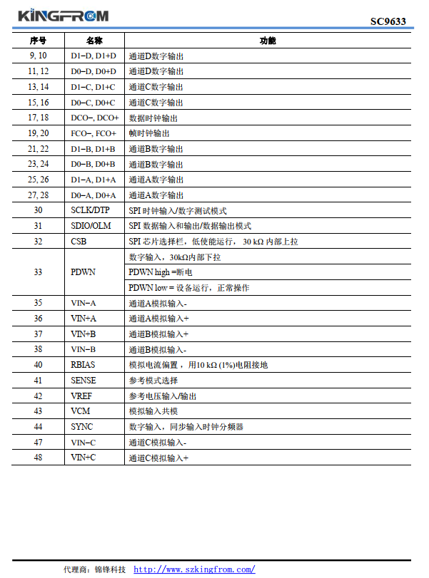 SC9633采用符合Rohs標(biāo)準(zhǔn)的48引腳的QFN封裝。 額定溫度范圍為-40℃至+85℃。