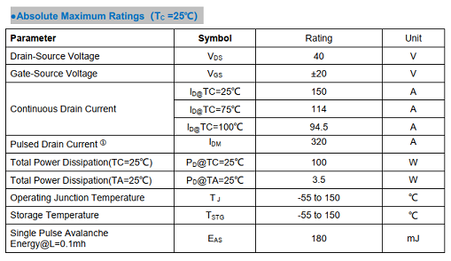 ZMS040N10HB TO-263 100 ±20 2/3/4 4.0/5.2 - - - 160