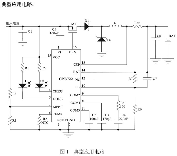 CN3722(注1)是一款可使用太陽能電池供電的PWM 降壓模式充電管理集成電路,具有太陽能電池最大功率點跟蹤功能。CN3722非常適合對單節或多節鋰電池或磷酸鐵鋰電池的充電管理,具有封裝外形小,外圍元器件少和使用簡單等優點。 CN3722 具有恒流和恒壓充電模式,非常適合鋰電池或磷酸鐵鋰電池的充電。在恒壓充電模式,恒壓充電電壓由外部電阻分壓網絡設置;在恒流充電模式,充電電流通過一個外部電阻設置。對于深度放電的電池,當電池電壓低于所設置的恒壓充電電壓的66.7%時,CN3722用所設置的恒流充電電流的15%對電池進行涓流充電。在恒壓充電階段,充電電流逐漸減小,當充電電流減小到所設置恒流充電電流的9.5%時,進入充電結束狀態。當輸入電源掉電或者輸入電壓低于電池電壓時,CN3722自動進入低功耗的睡眠模式。其它功能包括輸入低電壓鎖存,電池溫度監測,電池端過壓保護和充電狀態指示等。CN3722 采用16 管腳TSSOP 封裝。