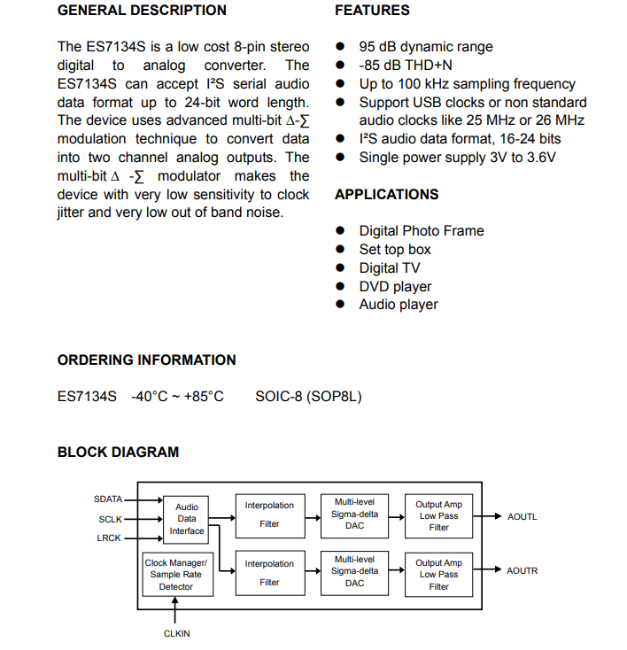 順芯ES7134S可替代CS4344