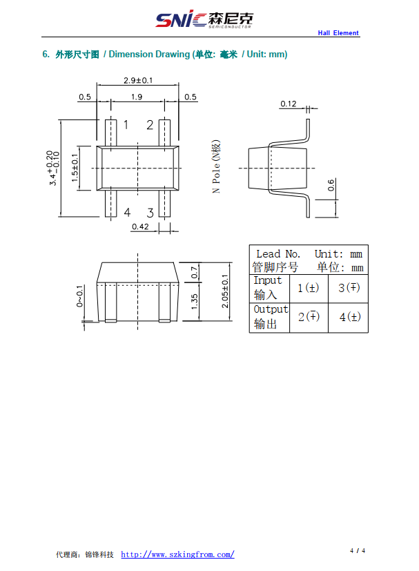 SNK-102國產替代HW-102A/SH-22A/NHE522TU高靈敏度 銻化銦 霍爾元件
