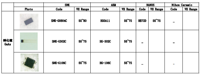 森尼克砷化鎵GaAs霍爾元件型號選型對照表