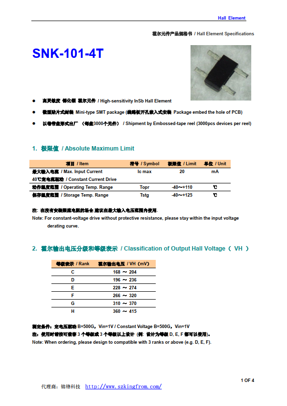 SNK-101-4T國產(chǎn)替代HW-101A-4T/SH-12B/NHE520FSR銻化銦線性霍爾