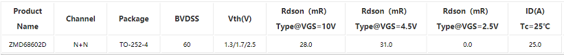 真茂佳ZMD68602D TO-220-4 60V/60V 28mΩ/28mΩ Vth1.7 筋膜槍雙N(N+N)溝道電機(jī)驅(qū)動(dòng)MOS管 真茂佳一級(jí)代理商 完全替代新潔能、后羿、銳駿,可用于筋膜槍,電機(jī)驅(qū)動(dòng),無線充,電子煙,鋰電保護(hù),PD快充,DCDC車充等市場(chǎng)應(yīng)用;