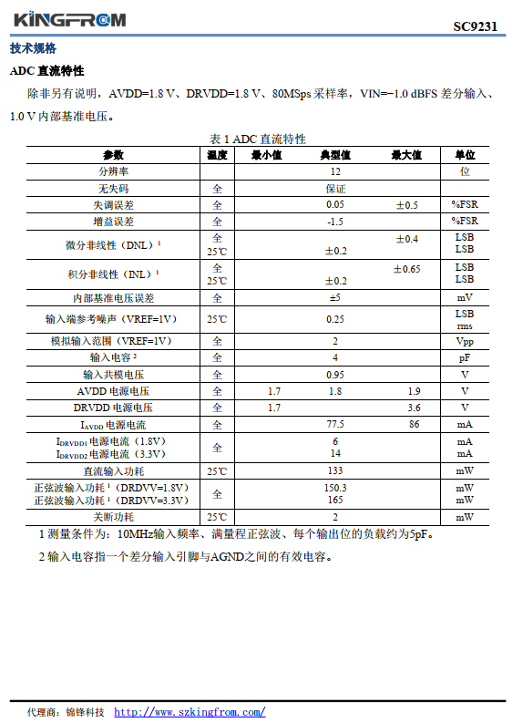 SC08D1500 功能包括用于多芯片同步的自動同步,每個通道的 15 位可編程增益和 12 位加符號可編程失調調整。 該 ADC 內部采樣保持放大器和擴展的自校準方案可實現除奈奎斯特以外的所有動態參數的非常平坦的響應,可產生 7.9 有效位數(ENOB),輸入信號為 100MHz, 1.5GHz 采樣率,同時提供 10 -18的誤碼率(CER),以單路 1.9V 電源在 1.5GSPS 的非多路復用模式下耗散典型的1.95 瓦特。