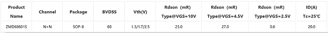 真茂佳ZMD68601S 60V 23mR Vth1.2/1.8/2.5 馬達電機雙N(N+N)溝道MOS管,可用于筋膜槍、電動工具等市場應用;