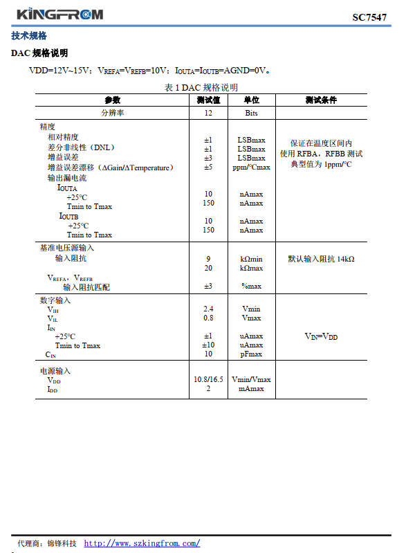 SC7547 是一顆雙通道 12 位的 DAC。芯片上配有電平移位器、數據寄存器以及用作與微處理器連接的邏輯控制接口。