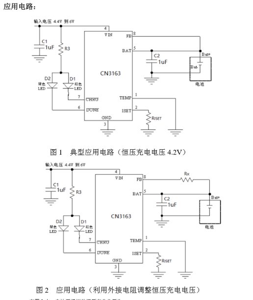 V,也可以通過一個外部的電阻調節。充電電流通過一個外部電阻設置。當輸入電壓掉電時,CN3163自動進入低功耗的睡