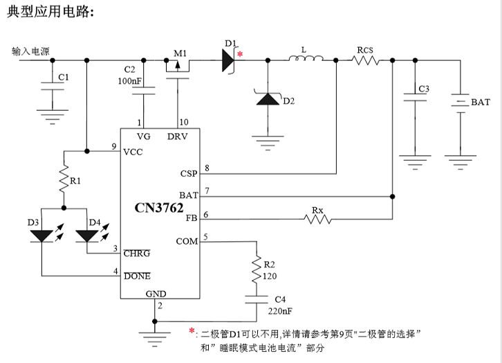 CN3762 是PWM 降壓模式兩節(jié)鋰電池充電管理集成電路,獨立對兩節(jié)鋰電池充電進行管理,具有封裝外形小,外圍元器件少和使用簡單等優(yōu)點。CN3762 具有涓流,恒流和恒壓充電模式,非常適合鋰電池充電管理。在恒壓充電模式,CN3762將電池電壓調(diào)制在8.4V,也可以通過一個外部電阻向上調(diào)整;在恒流充電模式,充電電流通過一個外部電阻設置。對于深度放電的鋰電池,當電池電壓低于恒壓充電電壓的66.5%(典型值)時,CN3762用所設置的恒流充電電流的17.5%對電池進行涓流充電。在恒壓充電階段,充電電流逐漸減小,當充電電流降低到恒流充電電流的16%時,充電結束。在充電結束狀態(tài),如果電池電壓下降到恒壓充電電壓的95.5%,自動開始新的充電周期。當輸入電源掉電或者輸入電壓低于電池電壓時,CN3762自動進入睡眠模式。其它功能包括輸入低電壓鎖存,電池端過壓保護和充電狀態(tài)指示等。CN3762 采用10 管腳SSOP 封裝。