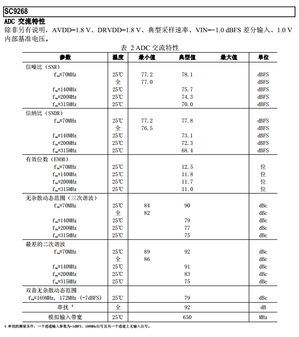 ? 信噪比(SNR) : 78dBFS(70MHz, 125MSps)