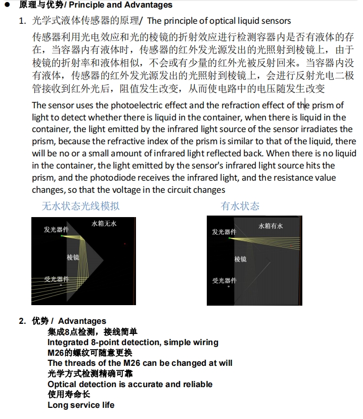 可配合遠(yuǎn)程設(shè)備或者其他設(shè)備,實(shí)時(shí)監(jiān)測魚缸里面的液位是否正常,例如在低水位監(jiān)測點(diǎn)安裝傳感器,若水位到達(dá)此點(diǎn)則提示,或在高液位監(jiān)測點(diǎn),水位超過則提 示,以確保魚缸水位不會過低過高。