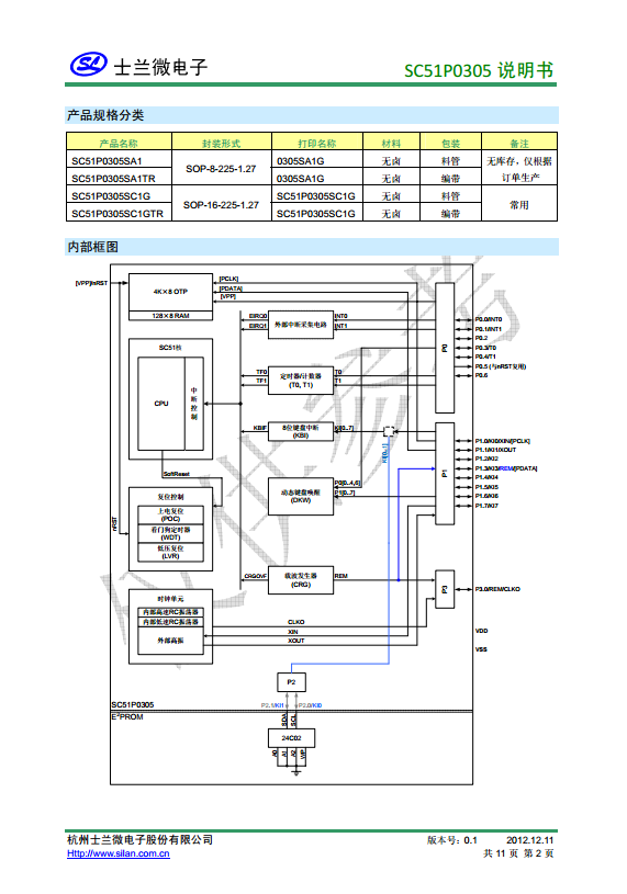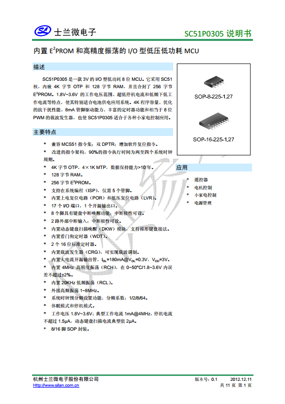 SC51P0305 內(nèi)置EEPROM和高精度振蕩的I/O型4K字節(jié)OTP低壓低功耗MCU