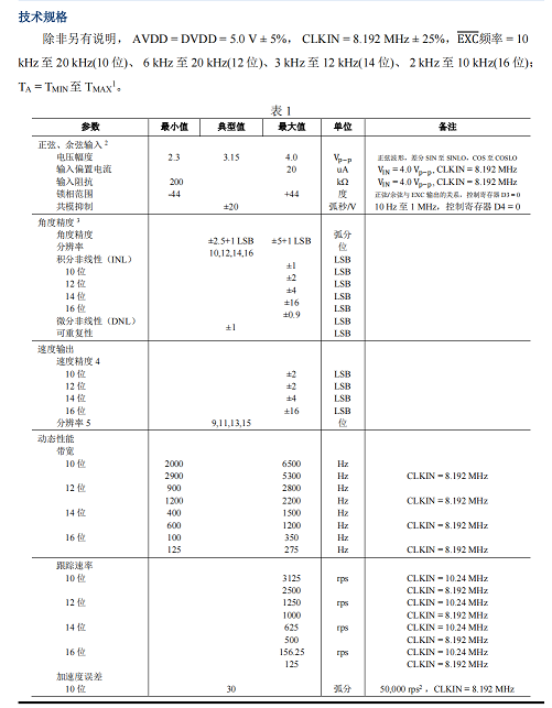 3. 輸入信號(hào)范圍。正弦和余弦輸入端支持 3.15 Vp?p ± 27%的差分輸入電壓。