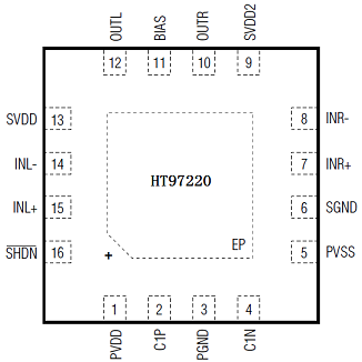 HT97220為差分輸入、可直接輸出的線路驅(qū)動(dòng)器/耳機(jī)放大器。5V供電時(shí),器件為32Ω耳機(jī)負(fù)載提供125mW驅(qū)動(dòng)。IC可以通過(guò)外部電阻調(diào)整增益。
