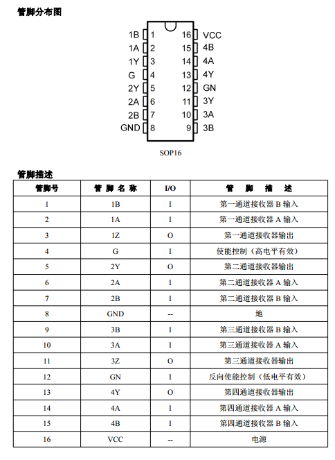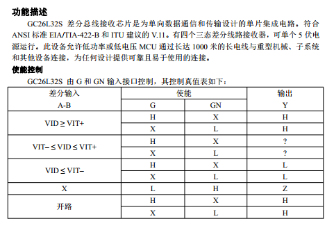 GC26L32S 是一款低壓 5V 四通道差分線路接收芯片, 可接收差分平衡和非平衡數(shù)字?jǐn)?shù)據(jù), 使能控制端可同時(shí)控制四路接收,切 G 為高電平有效, GN 為低電平有效。 輸入在開路狀態(tài)時(shí), 輸出高電平。GC26L32S 采用 SOP16 封裝。