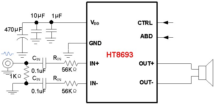 HT8693可實(shí)現(xiàn)AB類和D類的自由切換功能,在受到D類功放EMI干擾困擾時(shí),可隨時(shí)切換至AB類音頻功放模式。