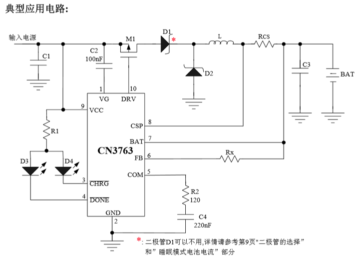 CN3763 是PWM 降壓模式三節鋰電池充電管理集成電路,獨立對三節鋰電池充電進行管理,具有封裝外形小,外圍元器件少和使用簡單等優點。CN3763 具有涓流,恒流和恒壓充電模式,非常適合鋰電池充電管理。在恒壓充電模式,CN3763將電池電壓調制在12.6V,也可以通過一個外部電阻向上調整;在恒流充電模式,充電電流通過一個外部電阻設置。對于深度放電的鋰電池,當電池電壓低于恒壓充電電壓的66.5%(典型值)時,CN3763用所設置的恒流充電電流的17.5%對電池進行涓流充電。在恒壓充電階段,充電電流逐漸減小,當充電電流降低到恒流充電電流的16%時,充電結束。在充電結束狀態,如果電池電壓下降到恒壓充電電壓的95.5%,自動開始新的充電周期。當輸入電源掉電或者輸入電壓低于電池電壓時,CN3763自動進入睡眠模式。其它功能包括輸入低電壓鎖存,電池端過壓保護和充電狀態指示等。CN3763 采用10 管腳SSOP 封裝。