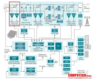 在光伏逆變器系統(tǒng)中,電流傳感器用于測(cè)量多種配置中的電流,例如逆變器的交流和直流輸入、直流/直流升壓、直流/直流轉(zhuǎn)換器和電網(wǎng)輸出,從而幫助監(jiān)測(cè)和控制功率轉(zhuǎn)換過(guò)程。住宅光伏逆變器中會(huì)對(duì)各個(gè)電源軌進(jìn)行電流檢測(cè),其中電源軌的電壓電平可能高達(dá) 1,000VDC,但光伏輸入端的電壓通常約為 500V 至 600VDC,而電網(wǎng)輸入和輸出則高達(dá) 400VAC。電流檢測(cè)功能可以幫助優(yōu)化光伏逆變器系統(tǒng),確保電網(wǎng)輸出上輸送的功率水平和頻率可靠且適當(dāng),使得所有負(fù)載都處于其安全工作區(qū) (SOA) 內(nèi)。