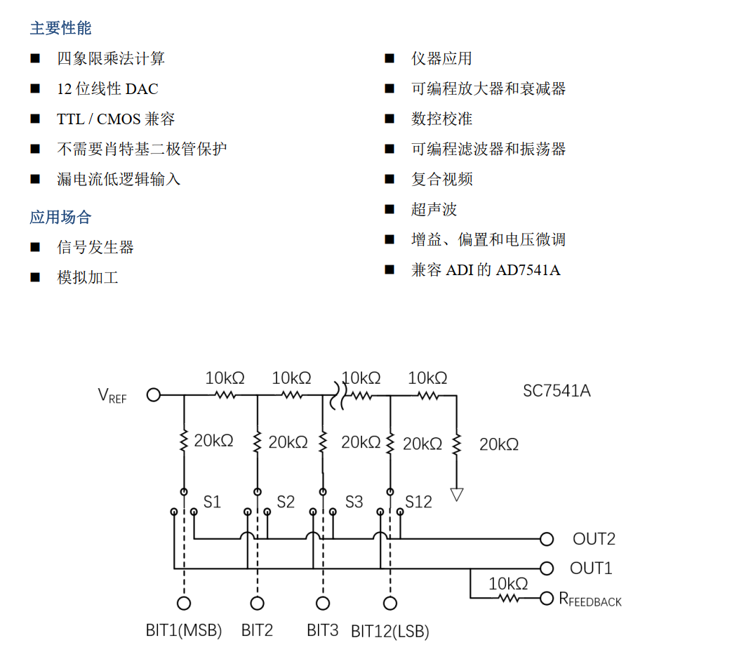 SC7541A 上的數字輸入是 TTL/CMOS 兼容的。他們有 a±1uA 的最大輸入電流要求,因此 SC7541A 不需要使用驅動電路。