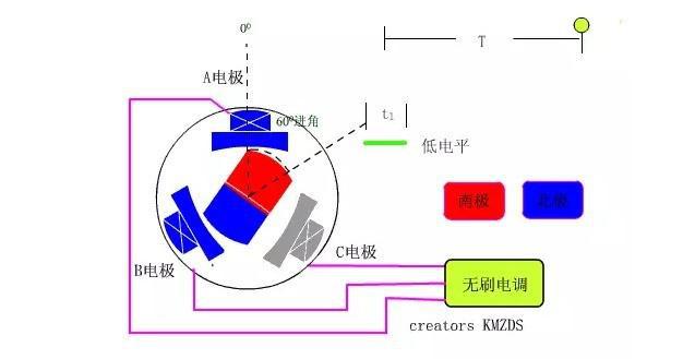 無刷電機的工作原理依舊可以想象一個圓柱體,不過這次不是小圓棒在中間轉,而是一個塊兒吸鐵石在中間轉,柱壁不在是吸鐵石的兩個磁極,而是剛才通了電的“扇葉”。這樣只要一通電,柱壁因為電磁有了磁極,和中間的吸鐵石產生互斥力,然后吸鐵石瘋狂轉,電能就此轉化為動能。它與有刷電機最大的區別就是,就不用那倆電刷通電了,因為我們可以直接給柱壁通電。