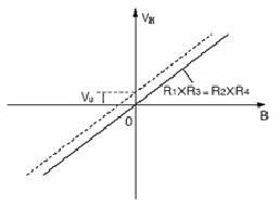 霍爾元件等效電路如圖1所示,四個(gè)不平衡電阻會(huì)導(dǎo)致輸出失調(diào)電壓VU(圖2)。