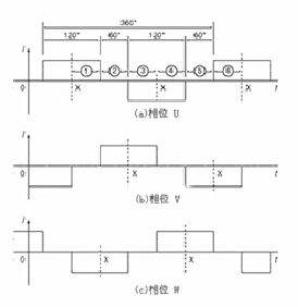 (圖4)三相直流電動(dòng)機(jī)時(shí)間圖 (圖5)轉(zhuǎn)軸位置和線圈電流對(duì)比圖