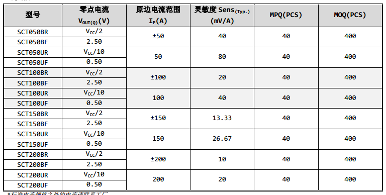 SCT050BR,SCT050BF,SCT050UR,SCT050UF,SCT100BR,SCT100BF,SCT100UR,SCT100UF,SCT150BR,SCT150BF,SCT150UR,SCT150UF,SCT200BR,SCT200BF,SCT200UR,SCT200UF對標替代 美國ALLEGRO電流傳感器有ACS758系列、ACS770系列、ACS756系列、ACS759系列、ACS772系列型號,ALLEGRO PIN TO PIN國產替代各型號如下