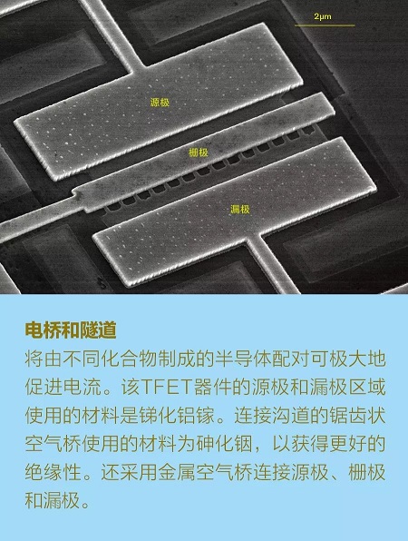 作為一個器件機制,隧穿并不是一個新概念。我們所使用的優盤內的閃存處理器、手機和其他裝置都采用了隧穿技術來將氧化阻擋層上的電子注入電荷捕獲區域。比如,在TFET中使用的隧穿結也廣泛地用于連接多結太陽能電池和觸發基于半導體的量子串級激光器。隧穿還控制著電流流過金屬半導體觸點(這是每個半導體設備的關鍵部分)的方式。