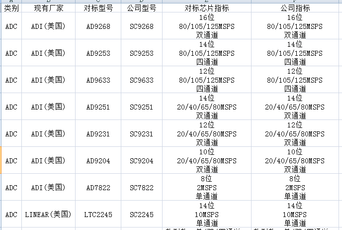 最熱門的幾款ADC(ADI(美國))選型表 國產ADC