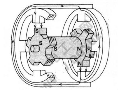 定子為8個磁極(放置繞組的主磁極)均勻分布,此8個磁極的內圓分布有與轉子齒距相同的齒,與轉子齒分布在氣隙兩邊。轉子齒多于定子齒。