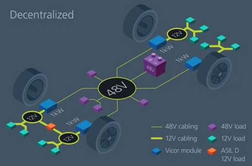 圖 2:通過為關(guān)鍵系統(tǒng)提供 48 V 電源,汽車設(shè)計(jì)師可以減少線束的重量和成本。(圖片來源:Vicor)