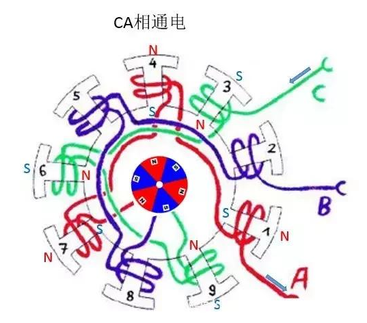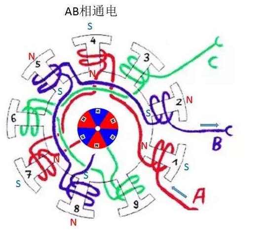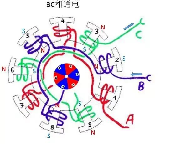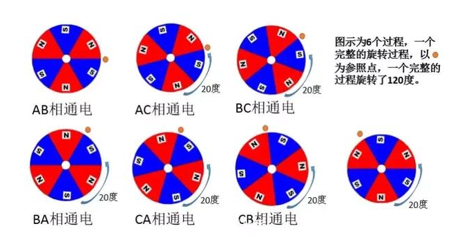 以上為六個(gè)不同的通電狀態(tài),其中經(jīng)歷了五個(gè)轉(zhuǎn)動過程。每個(gè)過程為20度。