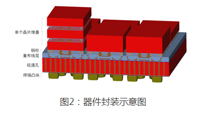 硅通孔技術(TSV)是指完全穿透硅基底的垂直互連。圖2展示的是基于硅中介層的硅通孔技術,即通過硅中介層實現高密度晶片與封裝層之間的電氣連接。該技術起初作為打線接合的替代方法而備受推廣,能夠在減小互聯長度來優化電阻的同時,通過多個晶片堆疊實現3D集成。