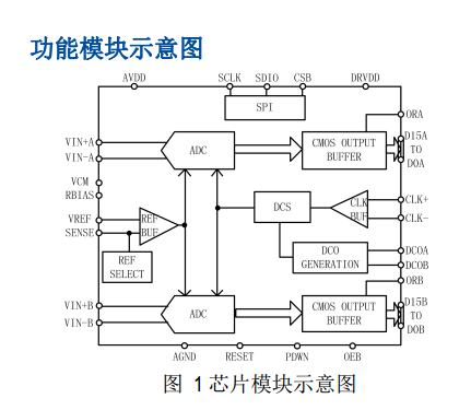 SC9268 是一款雙通道 16 位,最高轉換速度 125MSps,基于流水線架構的模數轉換器(ADC),內部集成了時鐘緩沖、基準電壓源、輸入采樣保持等功能模塊,實現對模擬輸入高速高精度模數轉換。并集成了獨特的數字校準算法,在不影響功耗的前提下,有效提升ADC動態特性。輸出為 1.8V 全并行 CMOS 電平,采用三線制 SPI 串行接口實現內部寄存器的讀寫操作。SC9268 采用 64 腳 QFN 封裝, 額定溫度范圍-40℃至 85℃工業溫度范圍。