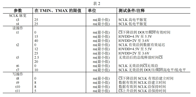 IOVDD=2V 至 5.5V,DGND=0V,邏輯輸入 0=0V,邏輯輸入 1=IOVDD,CLOAD=20pF。