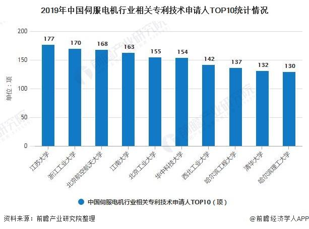 從我國伺服電機專利技術申請人構成來看,主要以各所大學為主,截至2019年廣西大學申請數量達到496個,排行第一;西安交通大學和中信戴卡股份有限公司分別排名第二、三位,其專利技術分別為為372和341個。
