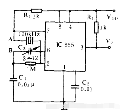 一般我們都是用555時基電路組成RC振蕩器,用555也可以組成穩定的石英晶體振蕩電路。如圖所示