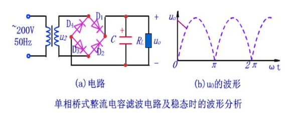 濾波電容的作用簡單來說是使濾波后輸出的電壓為穩定的直流電壓,它工作原理是整流電壓高于電容電壓時電容充電,當整流電壓低于電容電壓時電容放電,在充放電的過程中,使輸出電壓基本穩定。