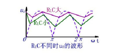 電容充電時間常數為rDC,因為二極管的rD很小,所以充電時間常數小,充電速度快;RLC為放電時間常數,因為RL較大,放電時間常數遠大于充電時間常數,因此,濾波效果取決于放電時間常數。電容C愈大,負載電阻RL愈大,濾波后輸出電壓愈平滑,并且其平均值愈大,如圖所示。