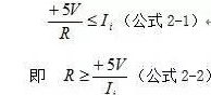 該排阻公共端接電源,即上拉電阻形式,作用是增強FPGA芯片I/O口(以下簡稱I/O口)的驅(qū)動能力,實際上就是增加I/O輸出高電平時輸出電流的大小。當(dāng)I/O輸出高電平時,+5V電源經(jīng)排阻與IN1~4相連,相當(dāng)于為I/O提供一個額外的電流輸出源,從而提高驅(qū)動能力。當(dāng)I/O輸出低電平時,可將I/O近似看做接地,而IN1~4因與I/O由導(dǎo)線直接相連,因此直接接受了I/O的低電平輸出信號。此時,+5V電源經(jīng)排阻R、I/O內(nèi)部電路(電阻近似為零)后接地,因此該路的電流不能大于I/O的拉電流(Ii)最大值,有公式2-1: