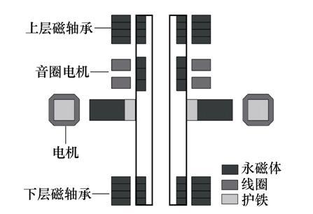 磁軸承是產生可控磁懸浮力使轉子穩定懸浮的機械元件。磁軸承具有無摩擦、無需潤滑、潔凈、高速高精和壽命長等特性,并且已經應用在高速或超高速驅動、人工心臟、渦輪分子泵和飛輪儲能等領域。然而,為了使傳動軸穩定懸浮,必須在傳動電機的兩端各安裝一個徑向磁軸承,導致轉子軸向長度較長,降低了系統的臨界轉速。