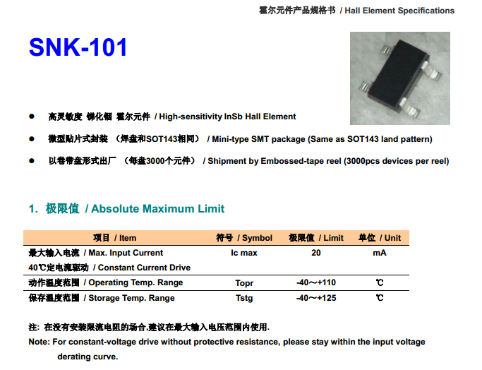 SNK-101是一款國產的霍爾芯片,可以完美替代旭化成的SNK-101,檔位有6個,C檔D檔E檔F檔G檔H檔,我司為森尼克一級代理,庫存大量現貨!