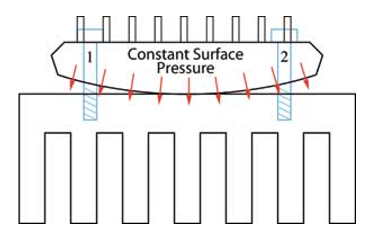 除TinyDIP/SMD外,SPM的表面都會有一定的翹曲。圖4為這種翹曲的一個夸張示意。模塊是用一些從表面中間穿出的螺絲緊固在散熱片上。如果安裝恰當,這種凸狀表面能保證有足夠的熱量從模塊傳遞到散熱片。如果緊固螺絲用力不均,就可能在模塊內產生應力,導致模塊破損或性能下降。建議采用圖4所示的螺絲緊固順序(先按1?2的順序預緊固,再按2?1的順序最終緊固)。通常,預緊固扭矩為最大額定緊固扭矩的25%。只要散熱片與器件緊貼好了,就可通過SPM的內置熱敏電阻獲取散熱片的溫度,從而簡化電路板的設計。