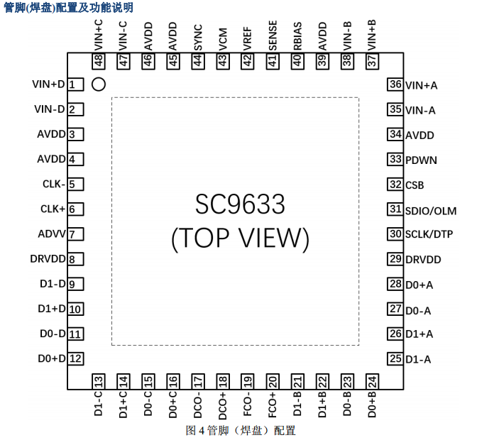 SC9633采用符合Rohs標準的48引腳的QFN封裝。額定溫度范圍為-40℃至+85℃。